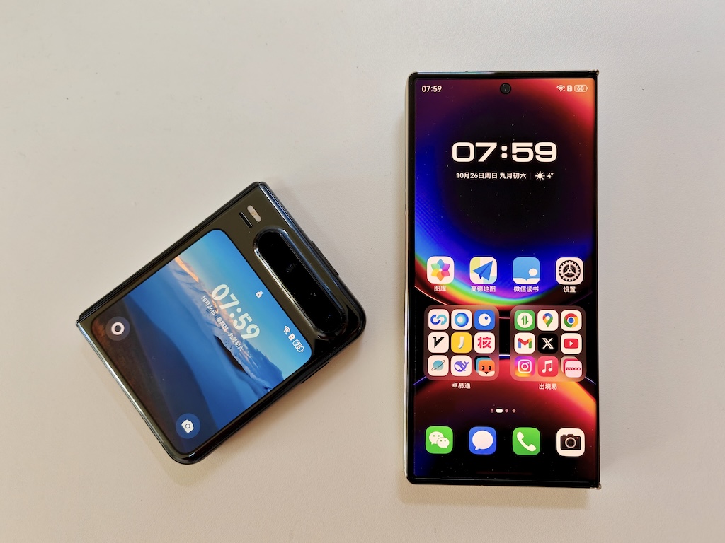 今年我最喜歡的 PuraX 和老大哥華為 Mate XTs 一比非常嬌小了|圖片來(lái)源:極客公園